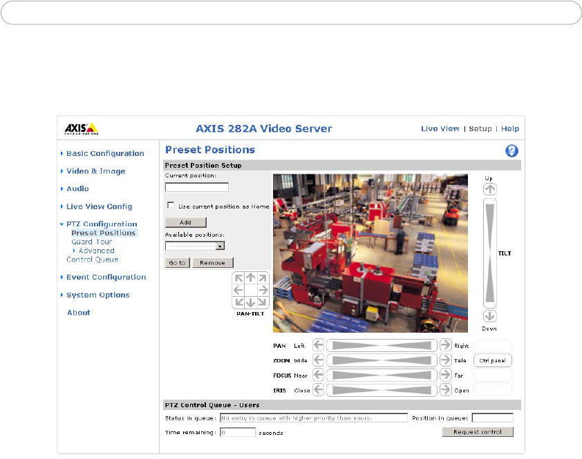 Once PTZ has been installed for the AXIS 282/AXIS 282A, PTZ Configuration now appears